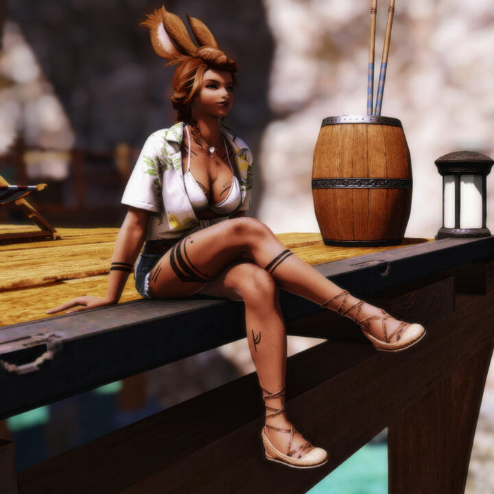 After spending a quarter century within the Golmore Jungle, the plans were in place that would allow for Leeja and her twin brother to leave. Could she have one day been the matriarch of her village? Perhaps, but that was irrelevant to the 25-year-old Rava whose eyes were set dead ahead on whatever adventures lied waiting outside of her homeland.The twins' first destination was the Royal City of Rabanastre, where they enrolled in the Centurio Clan and quickly made a name for themselves as adept hunters. Eventually, the pair would be recruited to enlist in the Royal Guard, and their service to the Dalmascan crown would last for another half century- even through the Garlean occupation.Following the fall of the Desert Sapphire, Leeja finds herself traversing the star, admiring the locations she'd had the chance to visit but never had the time to explore.